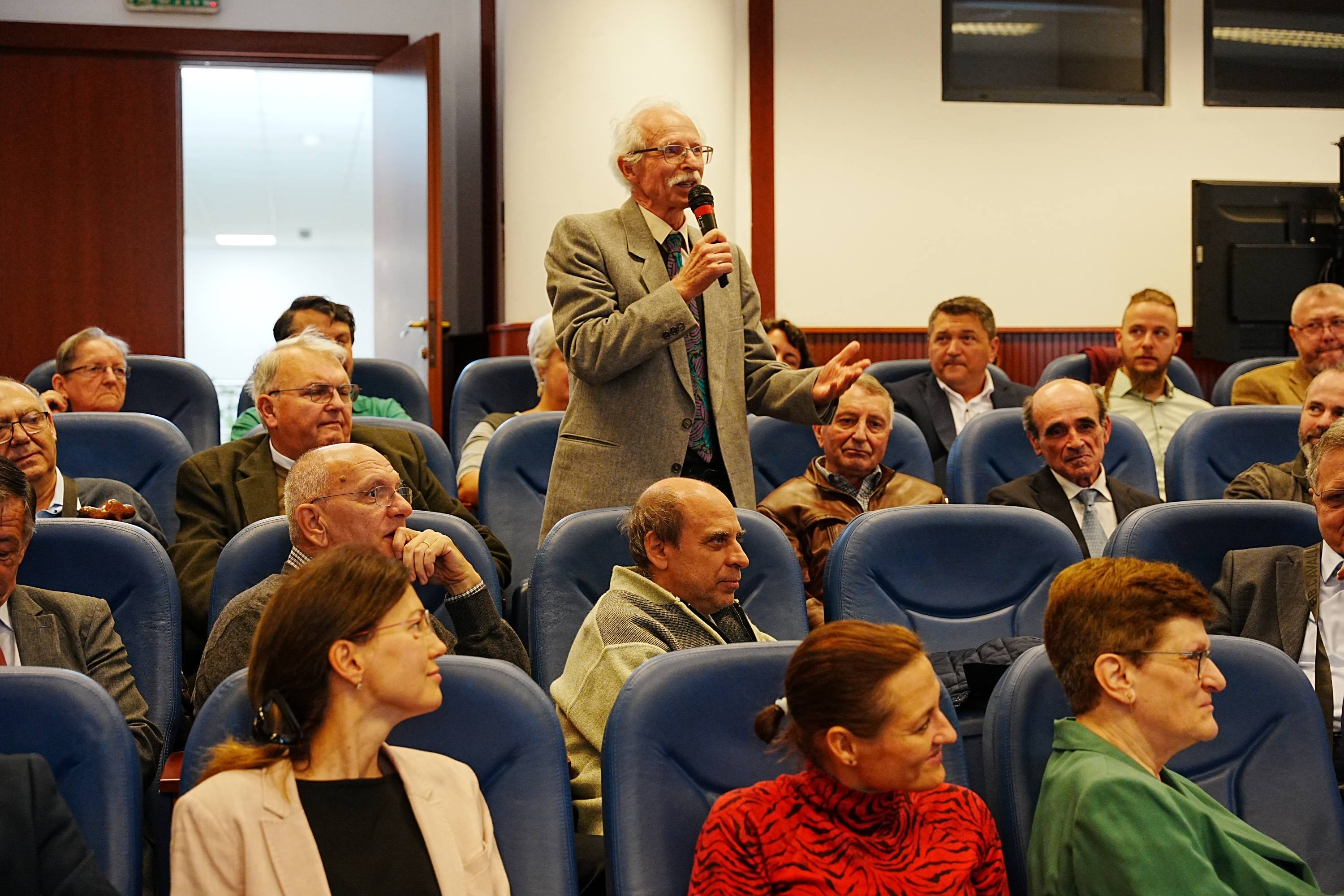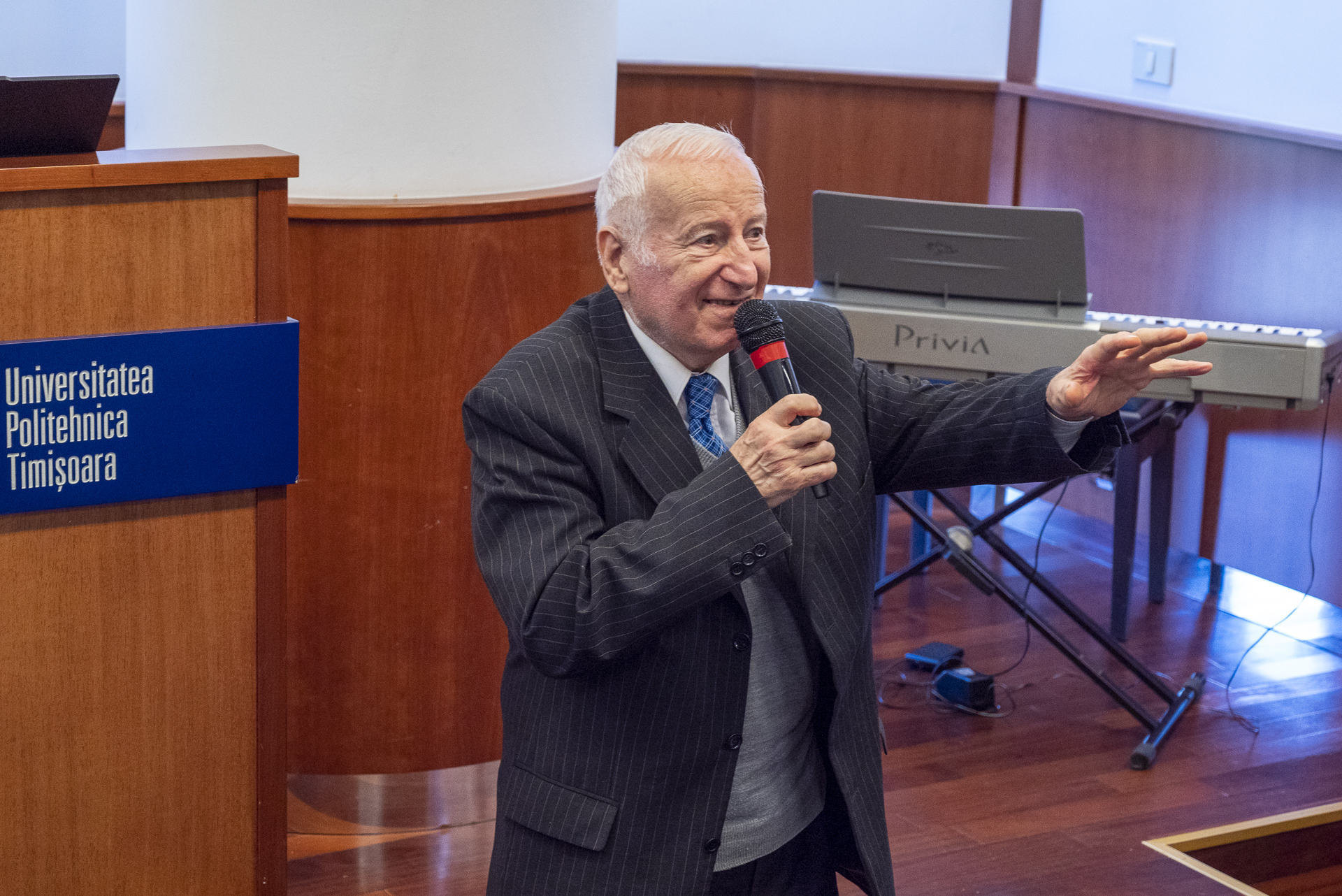 Un moment important al evenimentului a fost omagierea profesorilor Ion Naforniță (80 de ani) și Mircea Ciugudean (85 de ani) – două nume emblematice pentru școala timișoreană de electronică. Cariera lor impresionantă a fost evocată de conf.univ.dr.ing. Horia Baltă, directorul Departamentului Comunicații, și prof.univ.dr.ing. Dan Lascu, fost decan al facultății. Cei doi profesori au vorbit despre începuturile domeniului, despre provocările anilor ’70 și despre evoluția spectaculoasă a facultății, subliniind importanța muncii în echipă și a spiritului Politehnicii.
