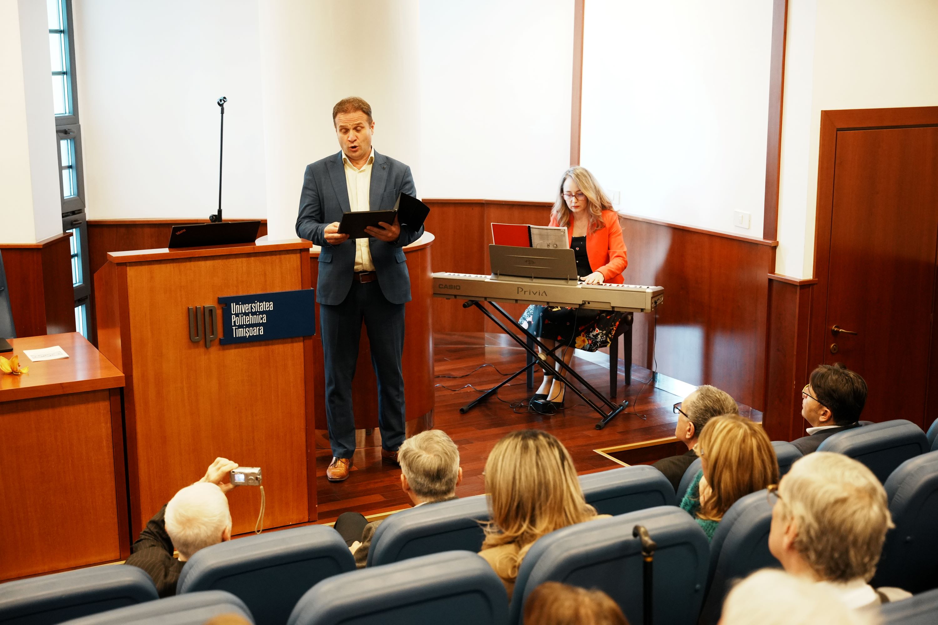 Sărbătoarea a fost completată de un moment muzical deosebit, susținut de Angela Balici și Cristian Ardelean, artiști ai Operei Române Timișoara, care au interpretat romanțe compuse chiar de prof. Mircea Ciugudean – o dovadă că pasiunea pentru frumos și rigoarea științifică pot coexista armonios.